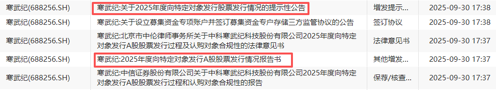 2025-10-06必威官方网站,Betway必威,必威APP下载国庆中秋长假前一晚(9月30日晚),今年明星股之一的寒武纪公告了2025年度定增发行情况。