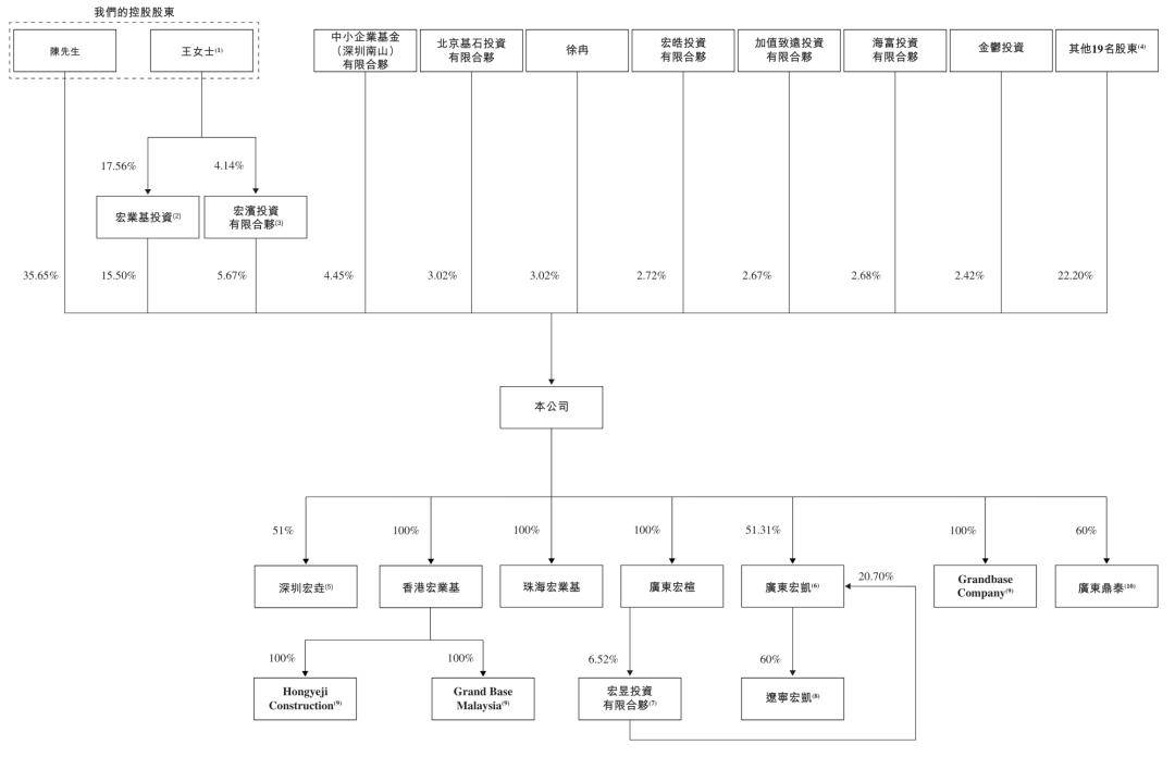 截至本招股说明书签署日,陈枝东直接持有宏业基35.65%的股份,王凤梅通过宏业基投资、宏一投资合计间接持有宏业基2.96%股份;陈枝东和王凤梅夫妇合计直接及间接持有宏业基38.61%股份。