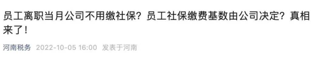 中山人社官方微信发布《月初离职、月末入职,当月要不要缴社保?》,明确员工月初离职、月末入职,当月要不要缴纳社保的问题。