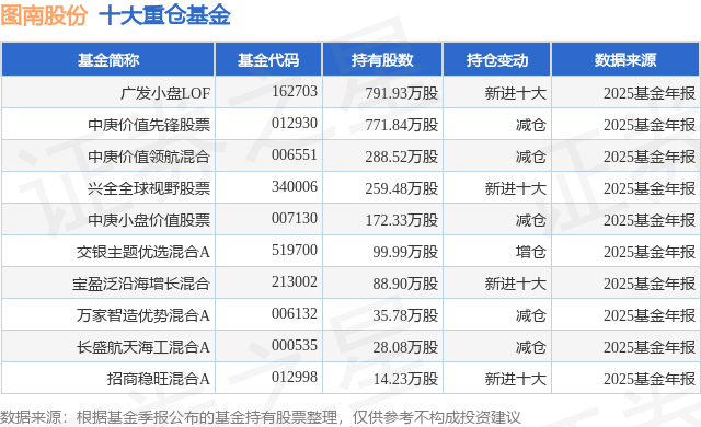 根据2025基金年报公募基金重仓股数据,重仓该股的公募基金共22家,其中持有数量最多的公募基金为广发基金的广发小盘LOF。广发小盘LOF目前规模为57.68亿元,最新净值1.8379(3月26日),较上一交易日下跌2.12%,近一年上涨37.22%。该公募基金现任基金经理为吴远怡 陈韫中。吴远怡在任的基金产品包括:广发创新升级混合,管理时间为2020年9月30日至今,期间收益率为-11.55%;广发科技创新混合A,管理时间为2020年11月18日至今,期间收益率为75.39%;广发价值核心混合A,管理时间为2022年11月1日至今,期间收益率为99.38%;广发成长领航一年持有混合A,管理时间为2023年3月10日至今,期间收益率为122.84%。陈韫中在任的基金产品包括:广发中小盘精选混合A,管理时间为2021年9月28日至今,期间收益率为54.67%;广发成长启航混合A,管理时间为2024年3月19日至今,期间收益率为170.07%;广发科技动力股票,管理时间为2024年5月31日至今,期间收益率为75.56%;