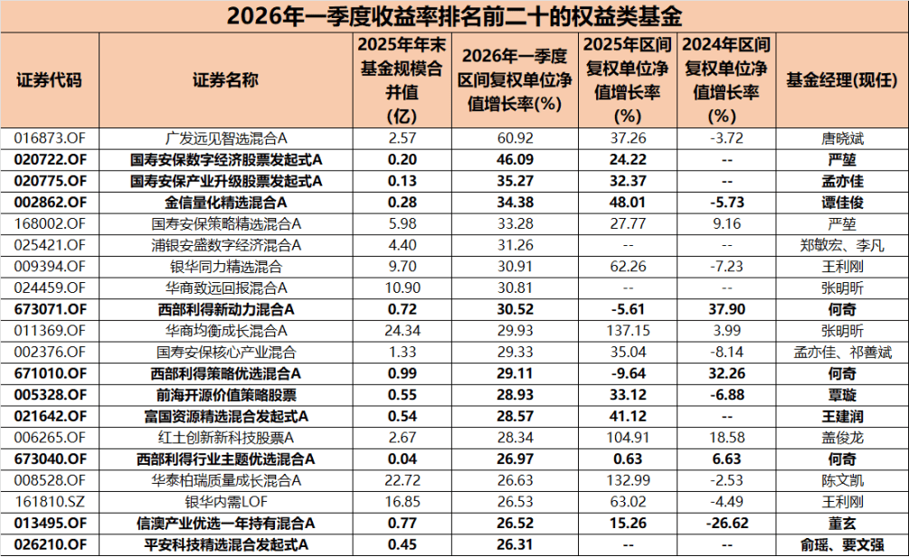 整体来看,一季度表现优异的基金,大多聚焦于有色金属与科技两条主线。其中,武阳、张明昕、韩创的表现尤为突出,值得风险偏好较高的投资者关注。