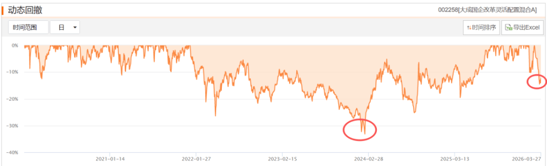 因为重仓有色,大成国企改革灵活配置A在3月份也经历了不小回撤,短短一周动态回撤达14%,回吐了不少利润。但拉长时间看,在2024年初较为极端的情况下,基金最大回撤在30%,其余大部分时间能控制在20%以内。