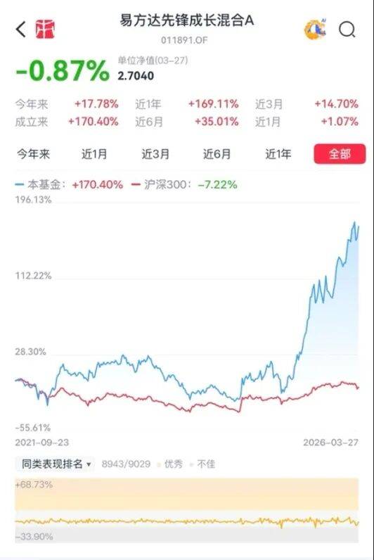 年内,武阳管理的易方达先锋成长混合A(011891.OF)表现不俗,基金收益率为19.9%。