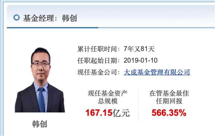 作为管理大成基金权益类产品的三号选手(管理规模继刘旭、徐彦之后),目前管理规模为167.1亿,任职超7年,在管基金最佳任期回报已高达566.3%。