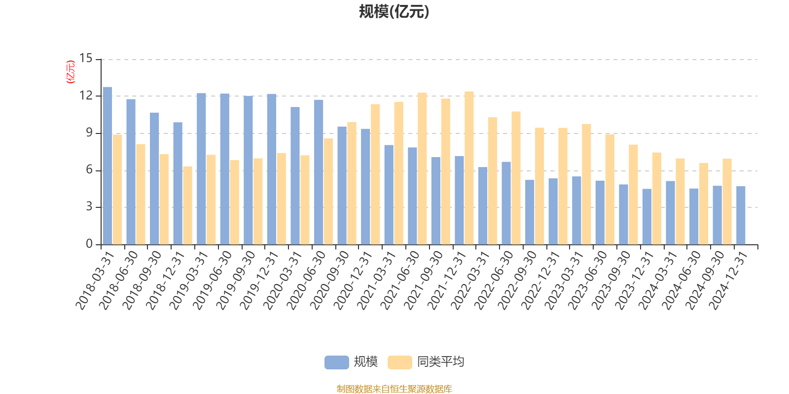 截至2024年12月31日,基金最近一年换手率约210.48%,持续低于同类均值。