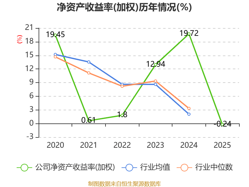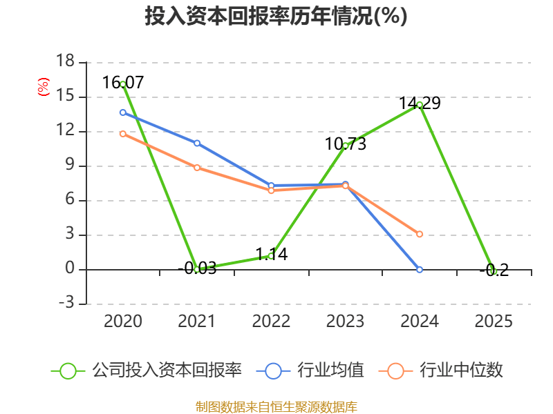 数据显示,2025年公司加权平均净资产收益率为-0.24%,较上年同期下降19.96个百分点。公司2025年投入资本回报率为-0.2%,较上年同期下降14.49个百分点。
