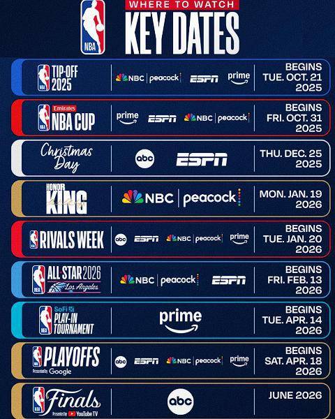 这场比赛到底在哪个平台看?收看渠道、赛程安排之复杂,都让 NBA 产出了一个能争夺「最佳视觉奖」的赛程图片。
